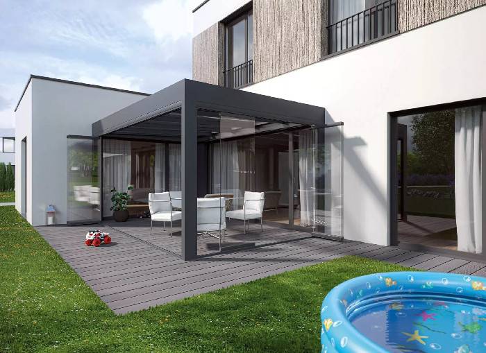 Bezrámové zasklení pergol a teras – lehké skleněné stěny bez hranic