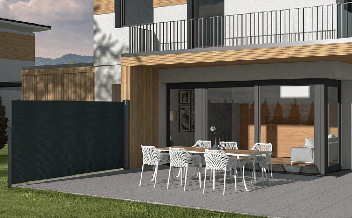 Boční a větrné clony fungují jako postranní stínění, které brání proudění větru a slunci z nízkého úhlu. Jsou také účinnou ochranou proti nežádoucím pohledům z okolních domů nebo ulice.