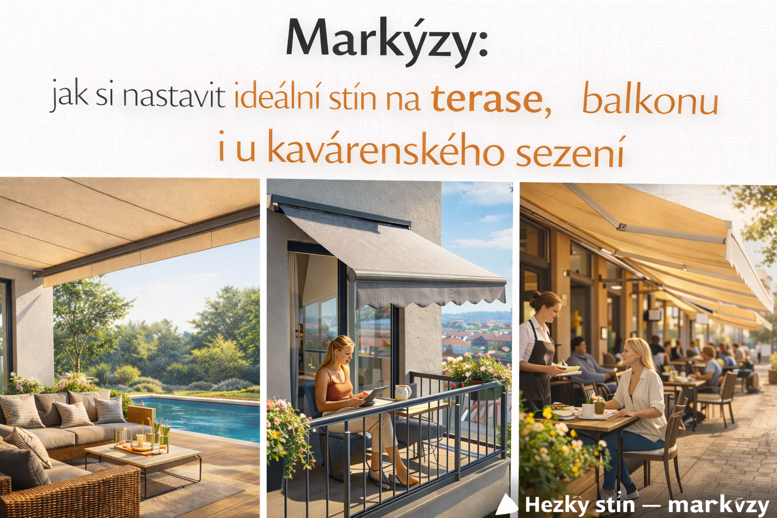 Na produktové stránce Markýzy najdete přehled hlavních typů. V tomto článku se podíváme na markýzy optikou konkrétních situací – terasa u domu, balkón, zahradní posezení, kavárna nebo pergola – a vysvětlíme, co má u každé z nich smysl řešit, aby stínění fungovalo nejen první léto.