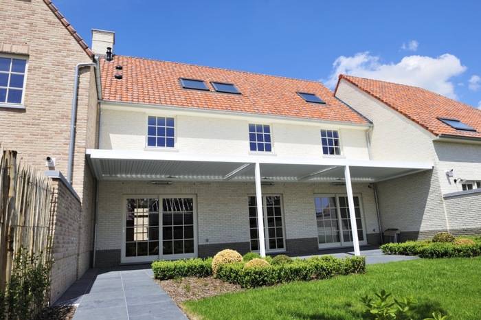 Jedinečná koncepce pergoly reguluje teplotu na terase a v domě a poskytuje ochranu před deštěm a sluncem.