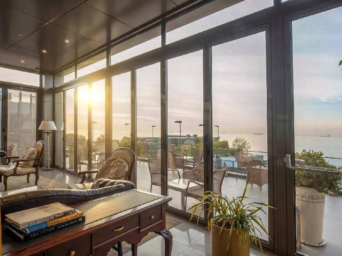 - Skládací skleněné systémy pro široké průchody mezi interiérem a exteriérem