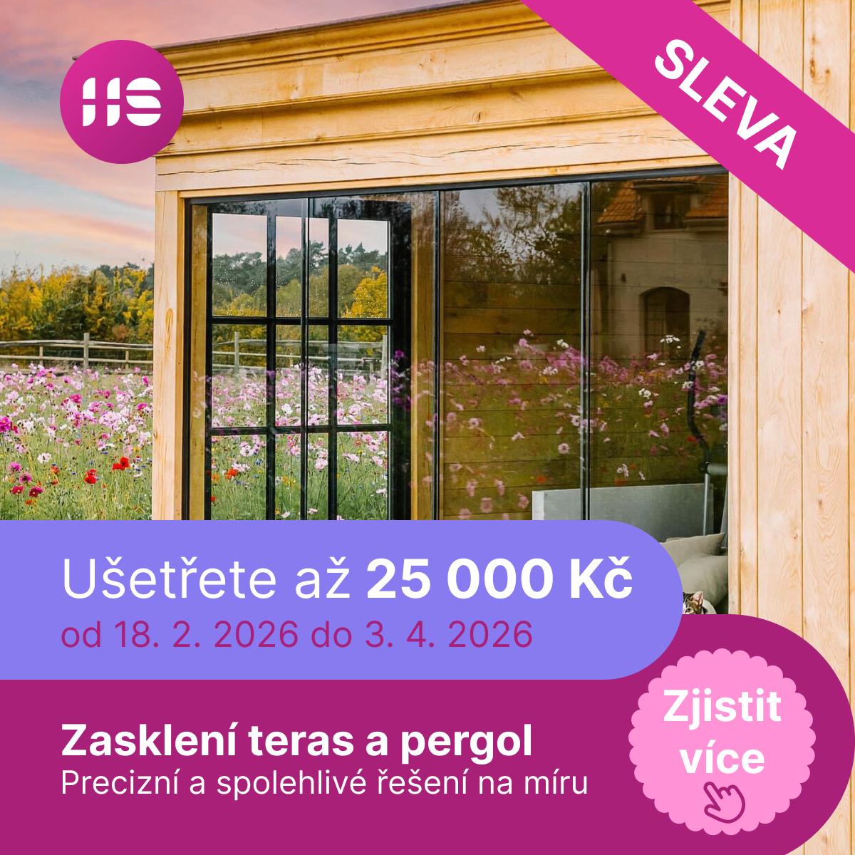 Sleva na kompletní zasklení od 25 000 Kč (materiál + montáž).