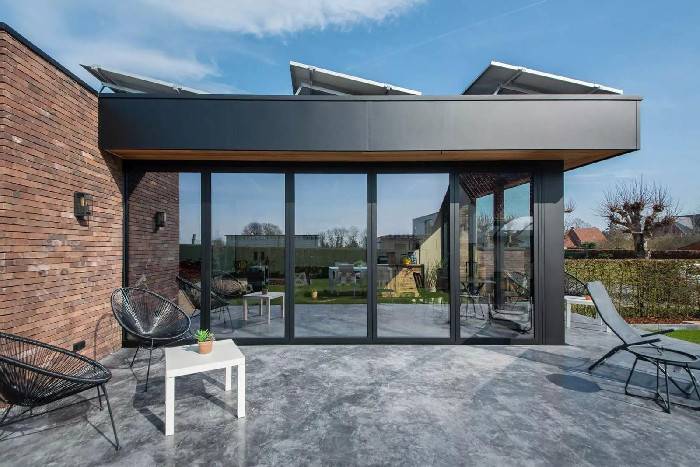 Hliníkové profily s jemnou strukturovanou povrchovou úpravou RAL ladí s moderní architekturou. - Ochrana před živly