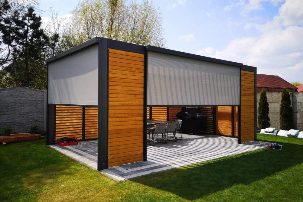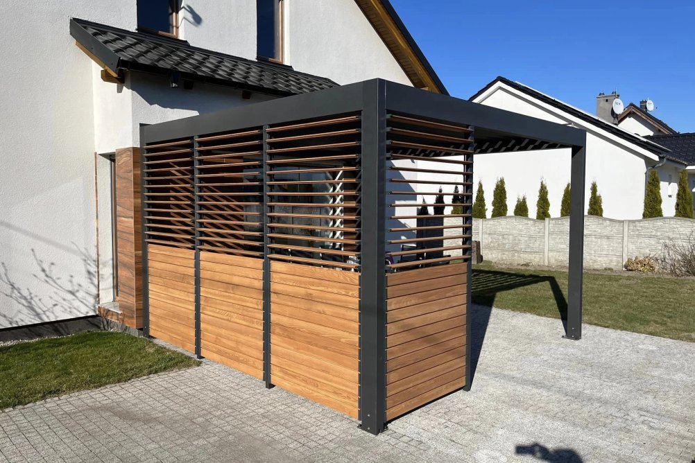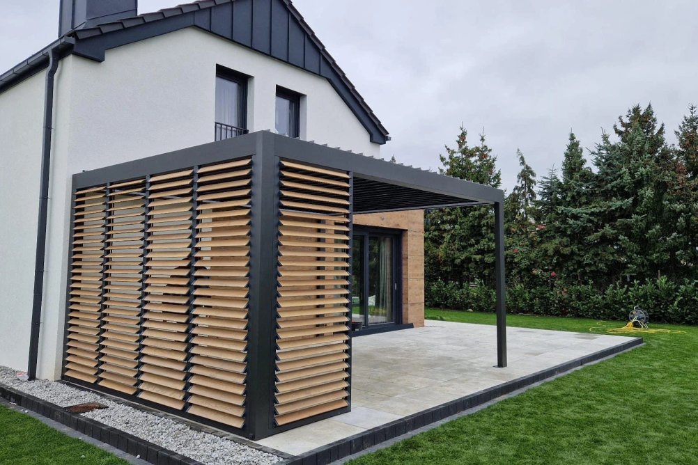 Kombinace hliníkového rámu a dřevěných lamel spojuje to nejlepší z obou světů – odolnost kovu s přirozenou krásou dřeva. Výsledek je stínění, které se hodí na přístřešky, terasy, altánky i balkony, kde hraje roli jak funkčnost, tak vzhled.