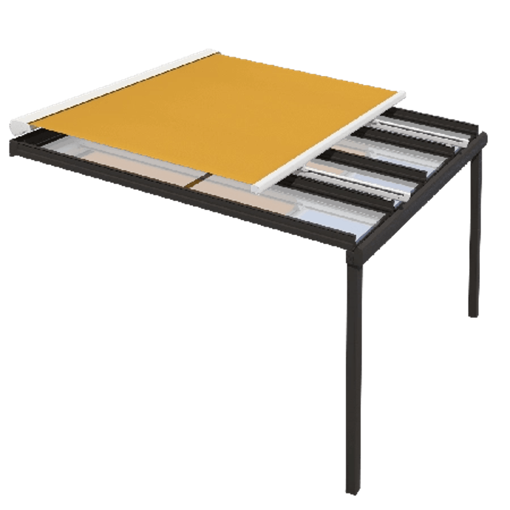 SOLEYA - Velká markýza nad zasklení bez vedení textilie bočním lemem v lištách