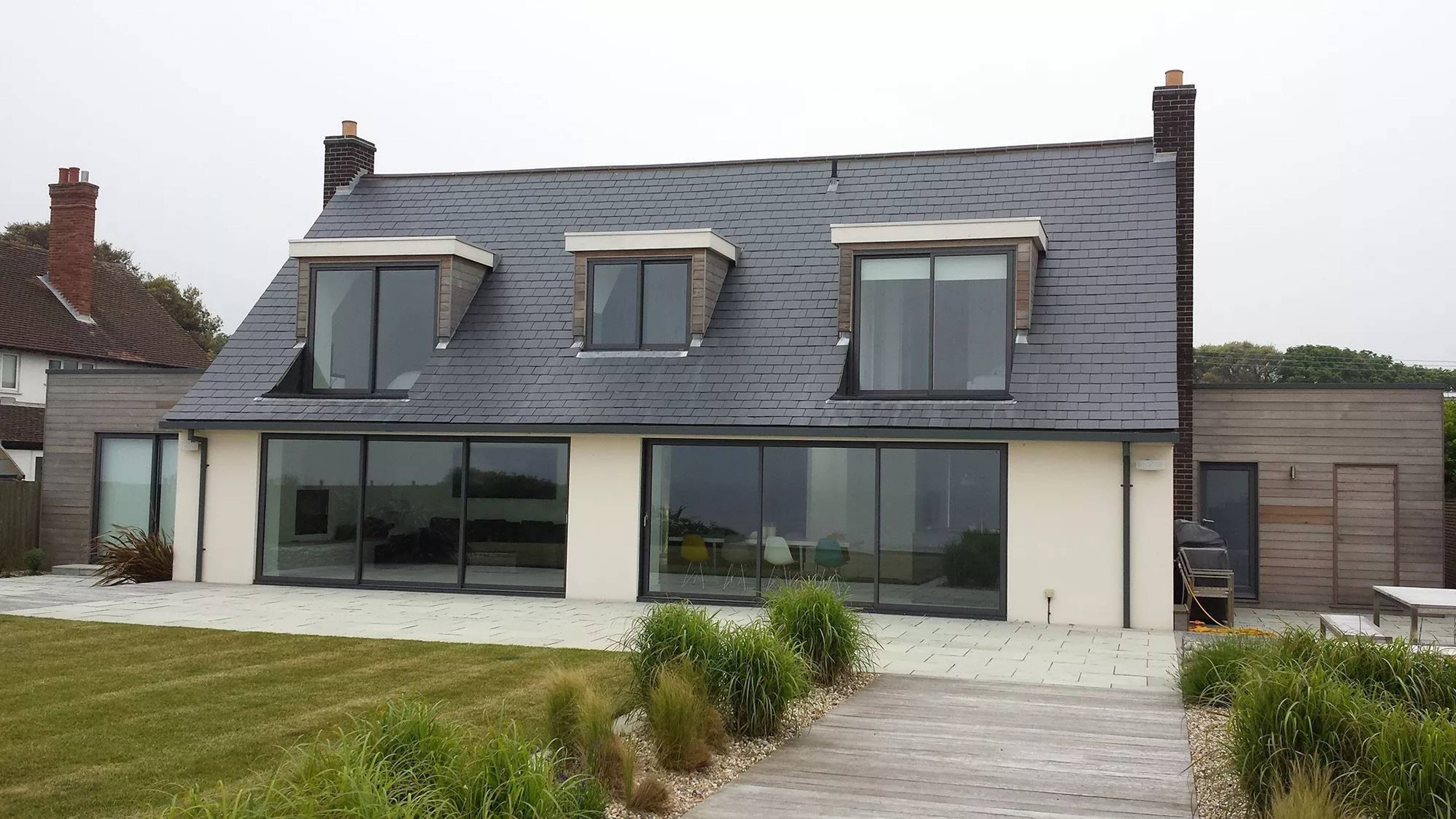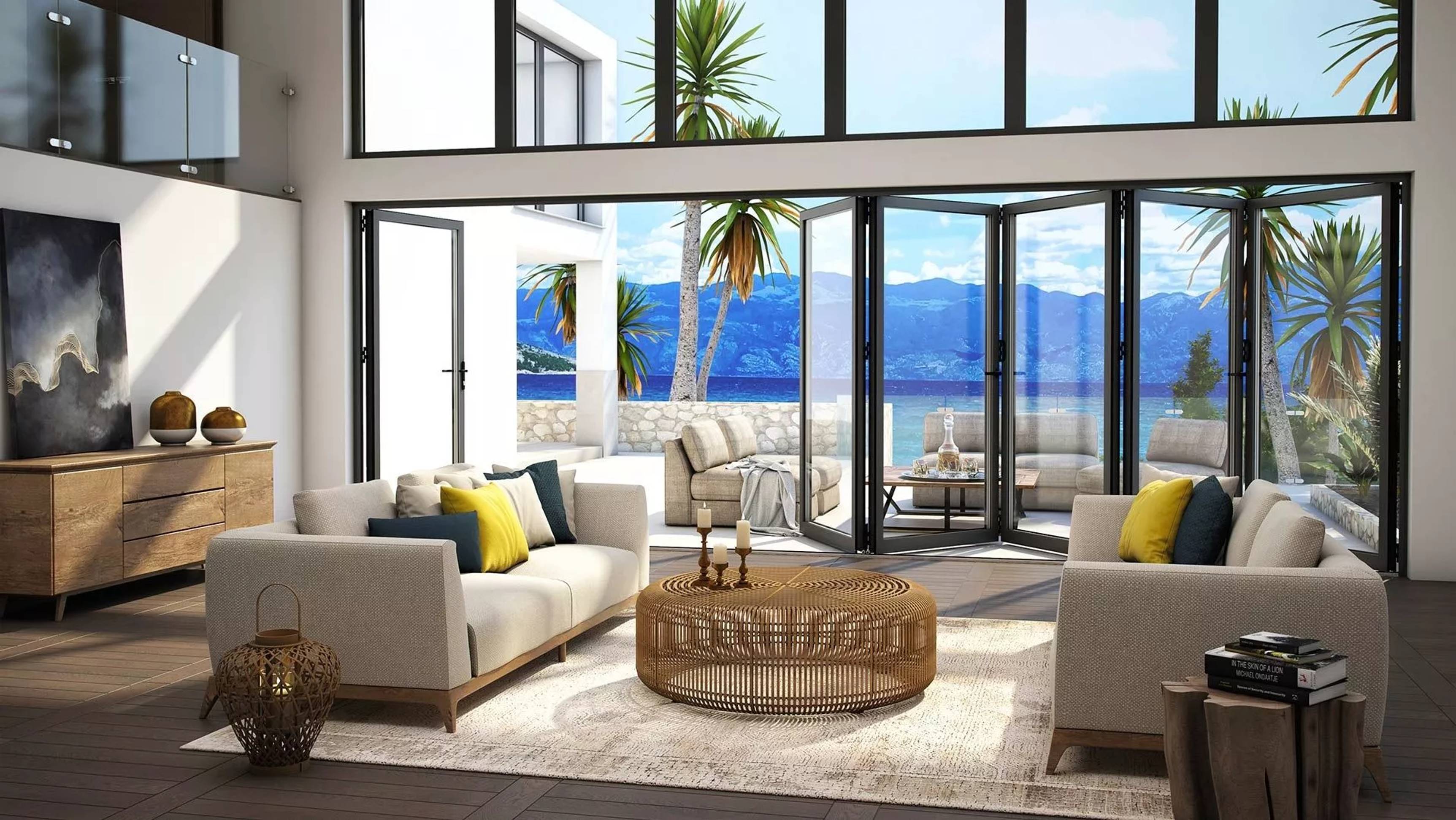 Posuvné dveře přinášejí pocit volnosti a propojení s okolím. Umožňují velkorysé prosklené plochy bez kompromisů v tepelné izolaci. Jejich hladký a tichý chod zajišťuje komfortní ovládání, zatímco subtilní rám podtrhuje moderní architekturu.