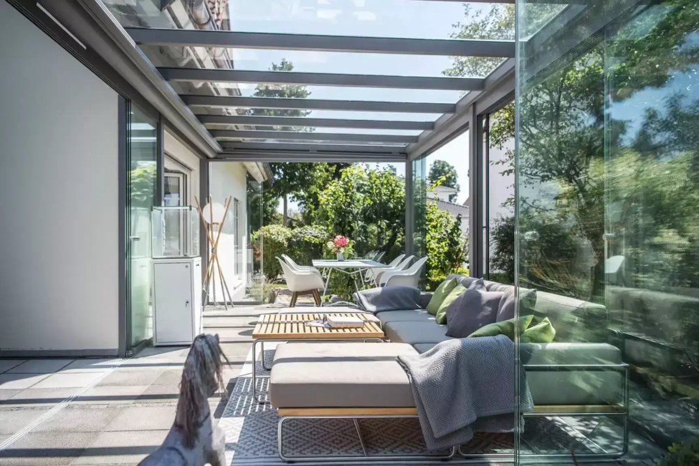 Plně zasklené systémy lze přizpůsobit vašim potřebám – od pevných stěn po posuvné nebo skládací varianty.