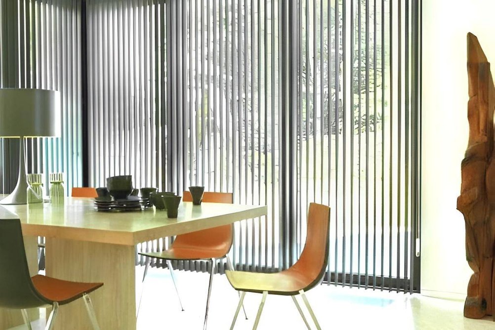 Vertikální žaluzie od Hezkého stínu – ideální řešení pro velká okna, francouzské dveře či prosklené stěny.