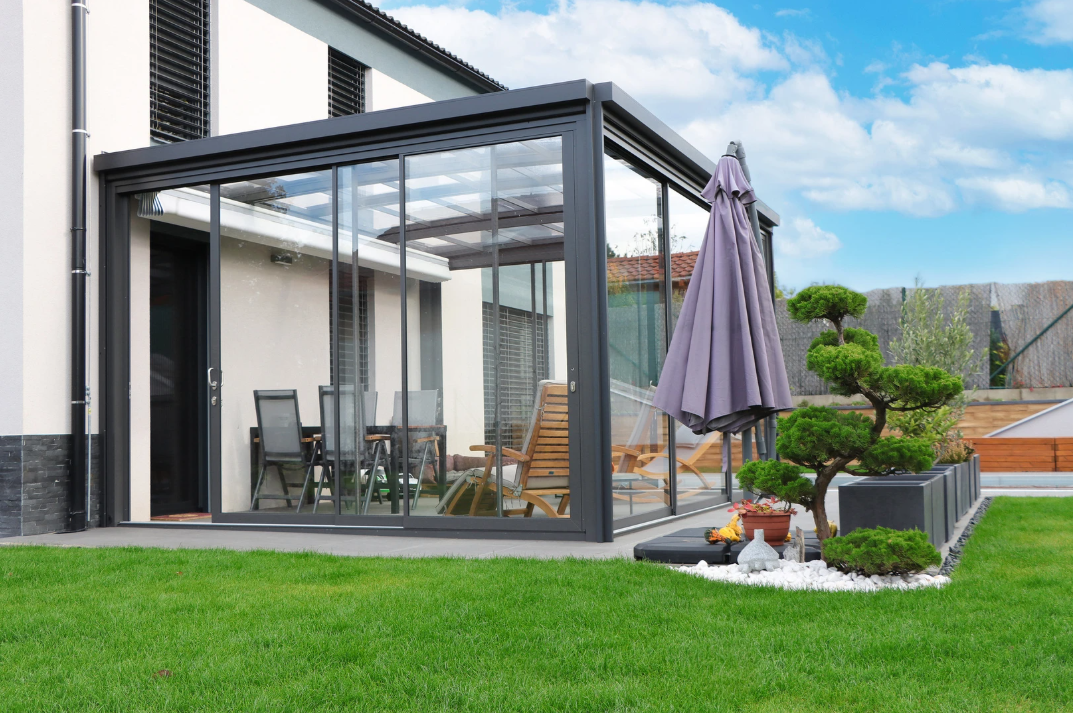 Kvalitní hliníkovou pergolu lze později doplnit o zasklení a proměnit ji v polo-zimní zahradu.