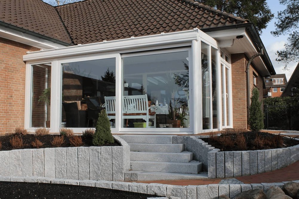 Zasklení s dvojskly a hliníkovou konstrukcí zajišťuje odolnost vůči povětrnostním vlivům a vytváří chráněný prostor pro celoroční využití.